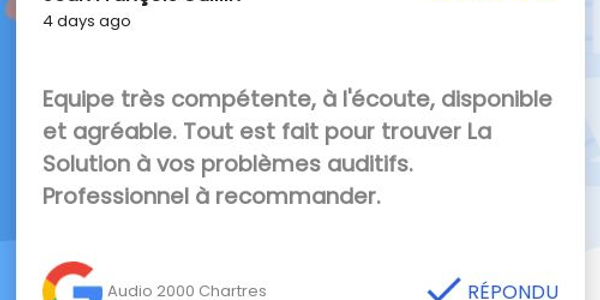 Votre Audioprothésiste Chartres - Georges Fessard - Audio 2000 est le centre expert pour répondre à tous vos besoins sur l’audition, que ce soit en prévention comme en soutien à des troubles auditifs naissants ou existants. Votre audioprothésiste diplômé et